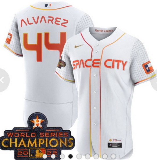2023 Men Astros Space City 44 Yordan Alvarez White Champions Flexbase Jersey