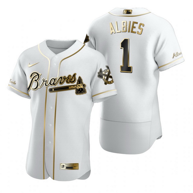 Home>MLB>Atlanta Braves>Men>Atlanta Braves 1 Ozzie Albies White Nike Mens Authentic Golden Edition MLB Jersey