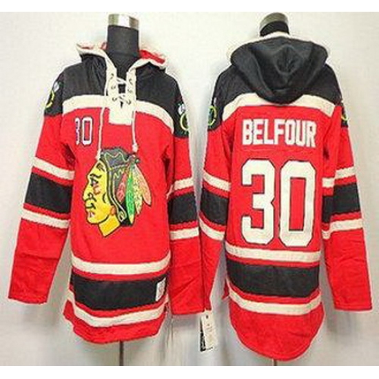 Chicago Blackhawks 30 Ed Belfour Red Lace-Up NHL Jersey Hoodies