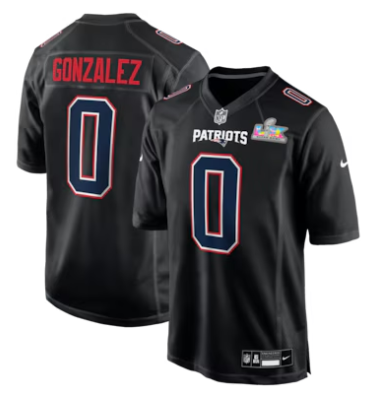 Home>NFL>2025 2026 Super Bowl LX>New England Patriots>Christian Gonzalez New England Patriots Nike Super Bowl LX Patch Carbon Fashion Game Jersey Black