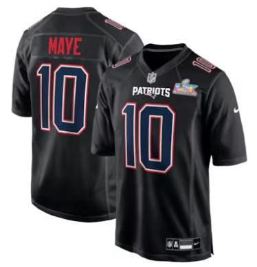 Home>NFL>2025 2026 Super Bowl LX>New England Patriots>Drake Maye New England Patriots Nike Super Bowl LX Patch Carbon Fashion Game Jersey Black