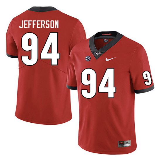 Men #94 Jonathan Jefferson Georgia Bulldogs College Football Jerseys Sale-Red