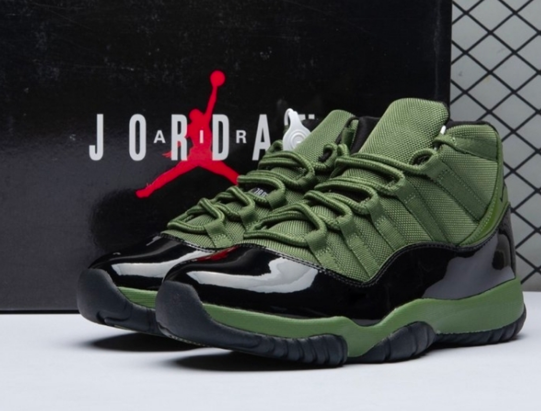Home>Shoes>AIR JORDAN 11>Men Air Jordan 11 Green Black Basketball Shoes