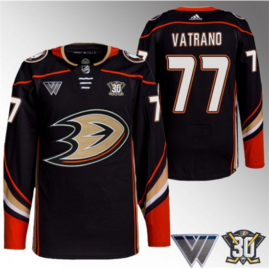 Men Anaheim Ducks 77 Frank Vatrano Black 30th Anniversary Stitched Jersey