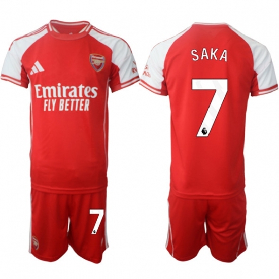 Men Arsenal FC 7 Bukayo Saka Red 2025 Home Soccer Jersey Suit