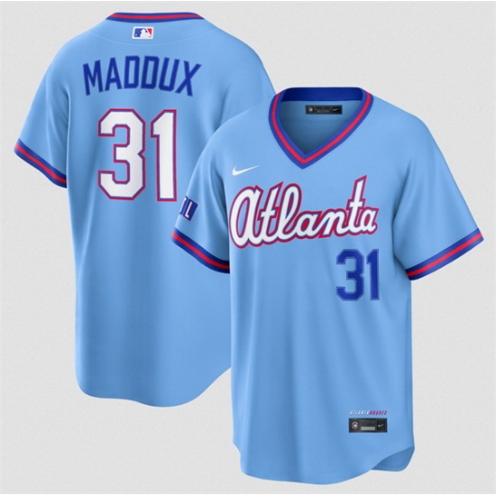 Home>MLB>Atlanta Braves>Men>Men Atlanta Braves 31 Greg Maddux Powder Blue 2026 City Connect Stadium Stitched Baseball Jersey