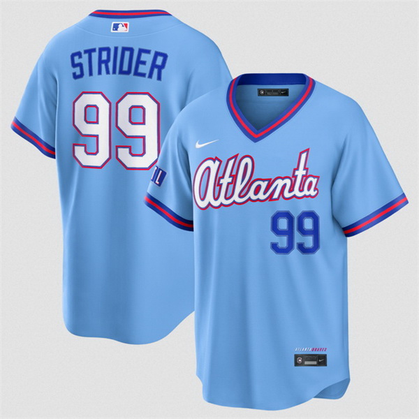 Home>MLB>Atlanta Braves>Men>Men Atlanta Braves 99 Spencer Strider Powder Blue 2026 City Connect Stadium Stitched Baseball Jersey