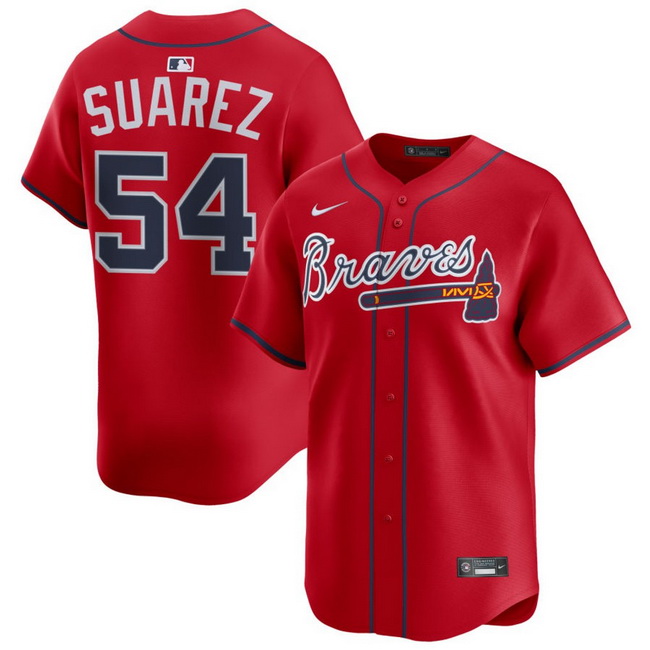 Men Atlanta Braves Nike Alternate Limited Jersey Red Suarez Jose 54