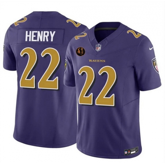 Home>NFL>Baltimore Ravens>Men>Men Baltimore Ravens 22 Derrick Henry Purple 2025 F U S E With John Madden Patch Limited Football Jersey