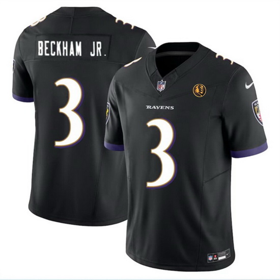Home>NFL>Baltimore Ravens>Men>Men Baltimore Ravens 3 Odell Beckham Jr Black 2023 F U S E With John Madden Patch Vapor Limited Football Jersey