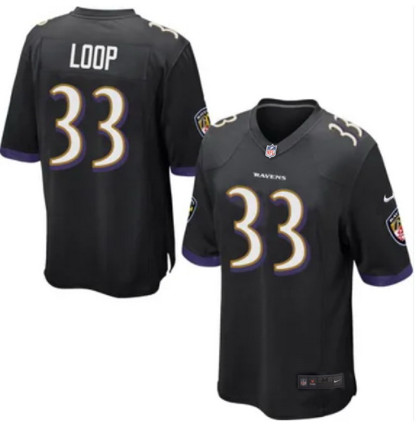 Men Baltimore Ravens Tyler Loop #33 Black Stitched NFL Jersey