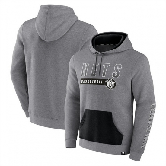 Men Brooklyn Nets Heathered Gray Off The Bench Color Block Pullover Hoodie