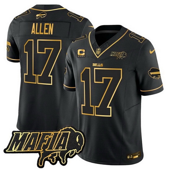 Men Buffalo Bills 17 Josh Allen Black Gold 2025 F U S E With Bills Mafia Patch 26 4 Star C Patch Vapor Limited Stitched Football Jersey