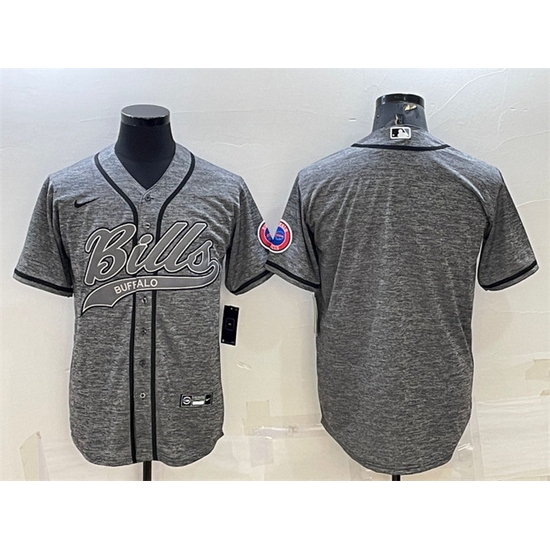 Men Buffalo Bills Blank Grey With Patch Cool Base Stitched Baseball Jersey