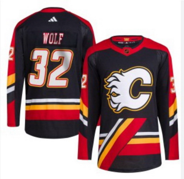 Men Calgary Flames Dustin Wolf #32 NHL Adidas Stitched Jersey black