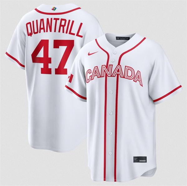 Home>MLB>2026 World Baseball>Canada>Men Canada Baseball 47 Cal Quantrill White 2026 World Baseball Classic Home Stadium Stitched Jersey