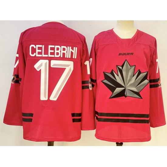 Men Canada Hockey #17 Macklin Celebrini Red Stitched Jersey
