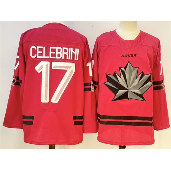 Men Canada Hockey 17 Macklin Celebrini Red Stitched Jersey