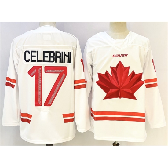 Men Canada Hockey 17 Macklin Celebrini White Stitched Jersey
