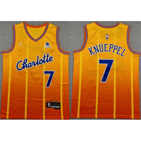 Home>NBA>Charlotte Hornets>Men>Men Charlotte Hornets 7 Kon Knueppel Orange 2025 26 City Edition Stitched Basketball Jersey