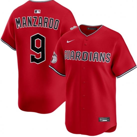 Home>MLB>Cleveland Guardians>Men>Men Cleveland Guardians 9 Kyle Manzardo Red Alternate Limited Stitched Baseball Jersey