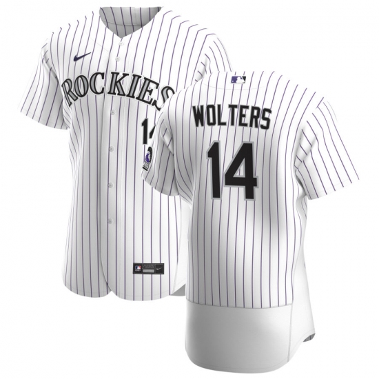Men Colorado Rockies 14 Tony Wolters Men Nike White Home 2020 Flex Base Player MLB Jersey