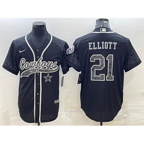 Men Dallas Cowboys 21 Ezekiel Elliott Black Reflective With Patch Cool Base Stitched Baseball Jersey