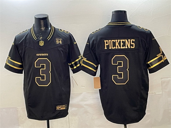 Home>NFL>Dallas Cowboys>Men>Men Dallas Cowboys 3 George pickens Black Gold 2025 F U S E 94 Marshawn Kneeland Memorial Patch Vapor Limited Stitched Football Jersey
