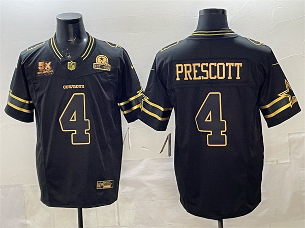 Men Dallas Cowboys 4 Dak Prescott Black Gold 2025 F U S E With 5x Super Bowl Champions 26 Established In 1960 Patch Vapor Limited Stitched Football Jerse