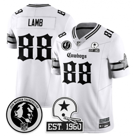 Home>NFL>Dallas Cowboys>Men>Men Dallas Cowboys 88 CeeDee Lamb White 2025 F U S E With John Madden Patch 26 Established In 1960 Patch Vapor Limited Stitched Football Jersey