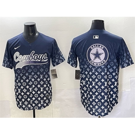 Men Dallas Cowboys Team Big Logo Navy Limited Stitched Baseball Jersey 2