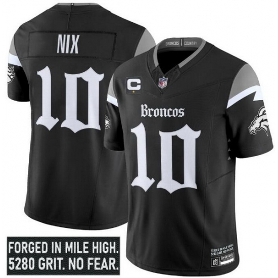 Home>NFL>Denver Broncos>Men>Men Denver Broncos Active Player Custom Black 2025 F U S E With 1 Star C Patch Gothic Mile High Shadows Edition Vapor Limited Stitched Football Jersey