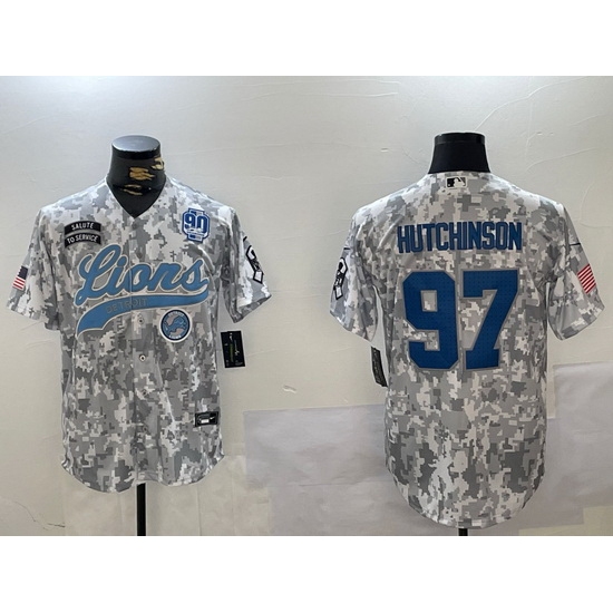 Men Detroit Lions 97 Aidan Hutchinson 2024 Arctic Camo Salute To Service Stitched Baseball Jersey 6