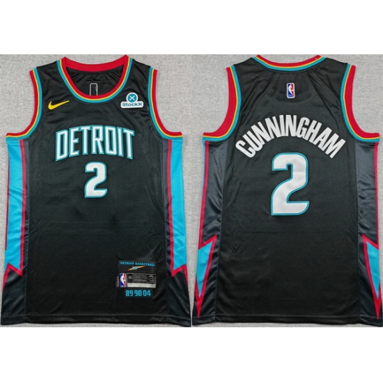 Men Detroit Pistons 2 Cade Cunningham Black 2025 26 City Edition Stitched Basketball Jersey