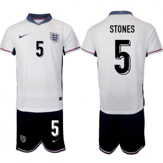Men England 5 John Stones 2024 25 White Home Soccer Jersey Suit