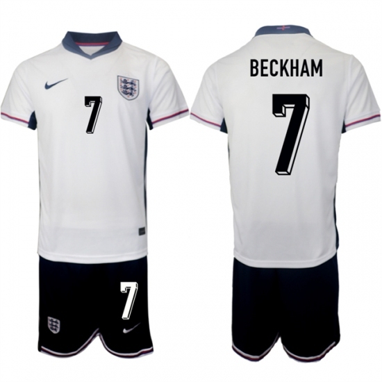 Men England 7 Beckham 2024 25 White Home Soccer Jersey Suit
