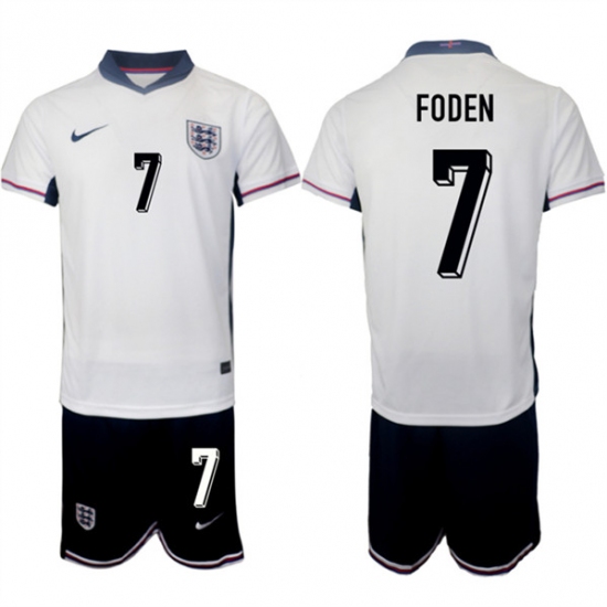 Men England 7 Phil Foden 2024 25 White Home Soccer Jersey Suit