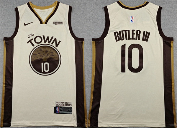 Home>NBA>Golden State Warriors>Men>Men Golden State Warriors 10 Jimmy Butler III Tan 2025 City Edition Stitched Basketball Jersey