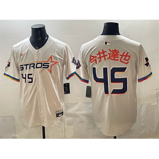 Men Houston Astros 45 u4ECA u4E95 u9054 u4E5F Cream 2025 City Connect With Texas Patch Limited Stitched Baseball Jersey