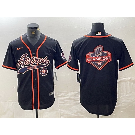 Men Houston Astros Black Team Big Logo With Patch Cool Base Stitched Baseball Jersey 10