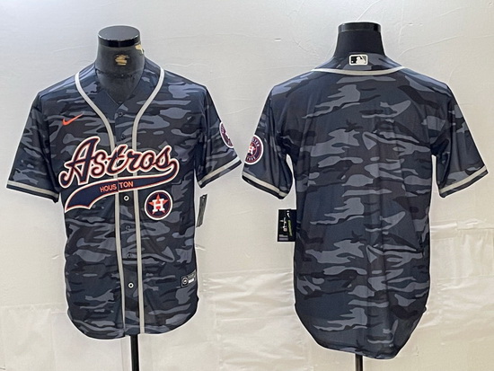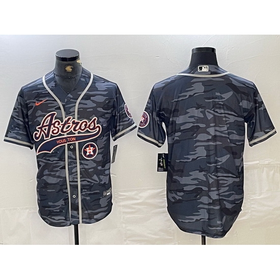 Men Houston Astros Blank Gray Camo With Patch Cool Base Stitched Baseball Jersey 7