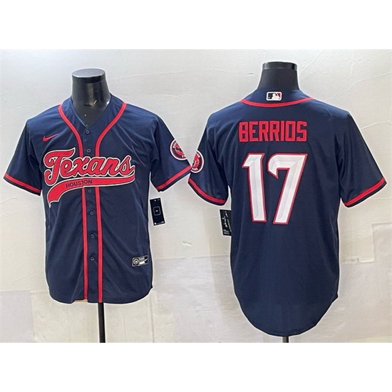 Men Houston Texans 17 Braxton Berrios Navy With Patch Cool Base Stitched Baseball Jersey 1
