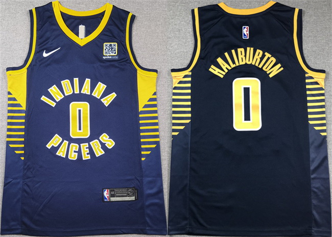 Home>NBA>Indiana Pacers>Men>Men Indiana Pacers 0 Tyrese Haliburton Navy Icon Edition Stitched Basketball Jersey
