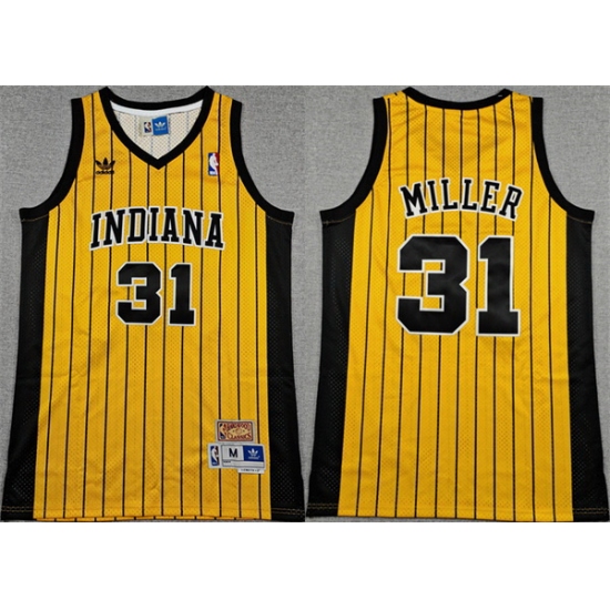 Men Indiana Pacers 31 Reggie Miller Yellow Throwback Stitched Jersey