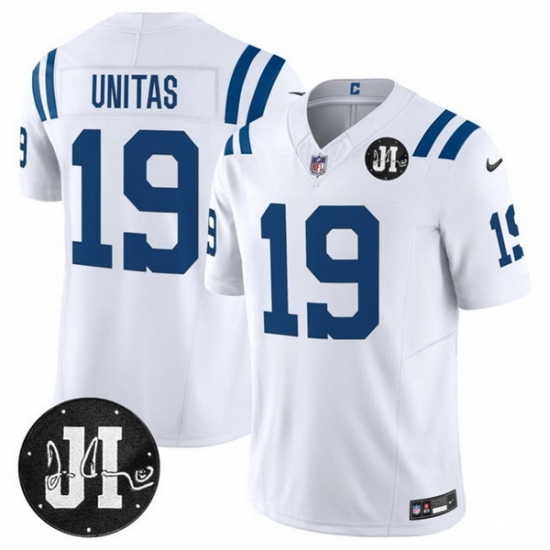 Home>NFL>Indianapolis Colts>Men>Men Indianapolis Colts 19 Johnny Unitas White 2025 F U S E Jim Irsay Patch Vapor Limited Stitched Football Jersey