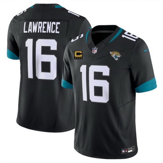 Men Jacksonville Jaguars 16 Trevor Lawrence Black 2025 With 4 Star C Patch F U S E Vapor Limited Stitched Football Jersey
