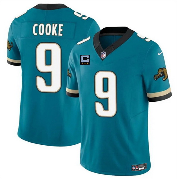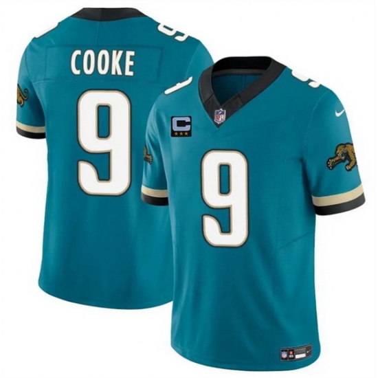 Home>NFL>Jacksonville Jaguars>Men>Men Jacksonville Jaguars 9 Logan Cooke Teal 2025 F U S E With 3 Star C Patch Prowler Throwback Vapor Limited Stitched Football Jersey