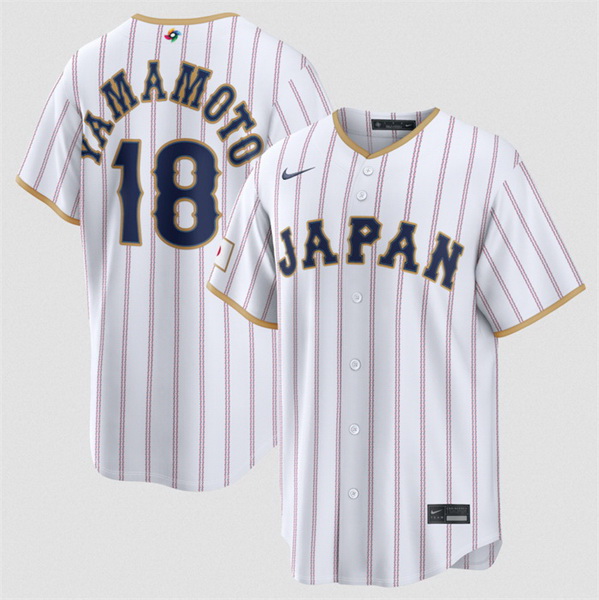 Home>MLB>2026 World Baseball>Japan>Men Japan Baseball 18 Yoshinobu Yamamoto White 2026 World Baseball Classic Home Stadium Stitched Jersey