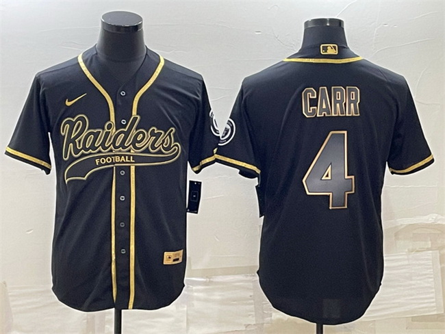 Men Las Vegas Raiders 4 Derek Carr Black Gold With Patch Cool Base Stitched Baseball Jersey