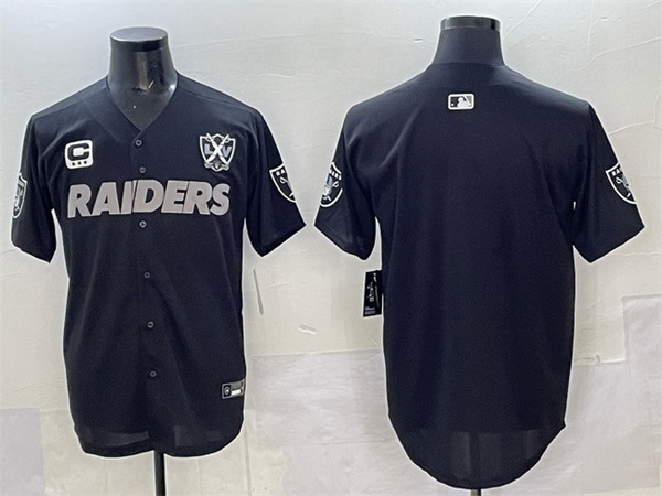 Home>NFL>Las Vegas Raiders>Men>Men Las Vegas Raiders Blank Black With Nevada Silver Stat Patch And 65th Anniversary Patch 3 Star C Patch Stitched Baseball Jersey